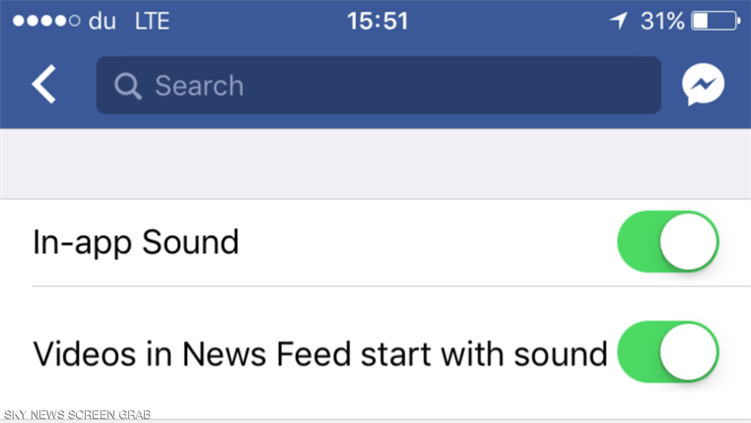 ويمكن للمستخدم أيضا تعطيل تشغيل الصوت بشكل تلقائي في تطبيقات فيسبوك عبر تعطيل الخيار Sound in the app الظاهر في نفس الصورة. من خلال تعطيل الخيار In-app Sound كما هو واضح في الصورة.